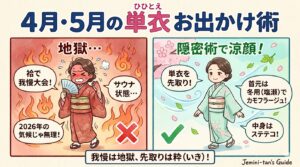 【2026年版】4月・5月に単衣を着ても大丈夫?我慢大会で地獄を見た私の「隠密・防暑術」新着!!